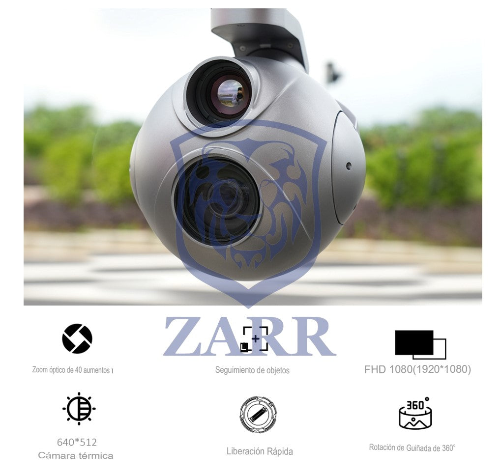 La cámara 40IE Pro es una cámara con zoom de 40x para drones con cámara termográfica para aplicaciones de inspección, vigilancia, búsqueda y rescate con drones. La cámara con zoom de 40x proporciona transmisión de video Full HD de 1080P a 30 fps y capacidad de zoom de hasta 1280, lo que le permite ver todos los detalles que necesita en el aire, incluso si está lejos del objetivo. Mientras que la cámara térmica te permite detectar objetivos de noche o en condiciones de baja visibilidad y proporciona información invaluable cuando se realizan misiones como inspección o monitoreo de objetos.