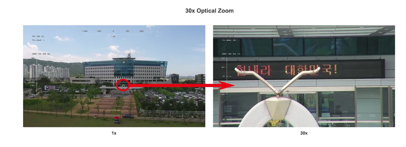 Zoom óptico de la lente 30x, F = 4.3~129 mm