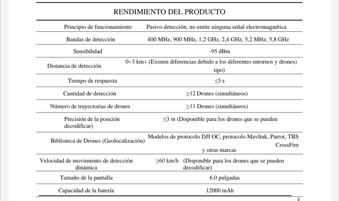 5. Distancia de detección: 0~3 km+ (Existen diferencias debido a los diferentes entornos y drones tipo)