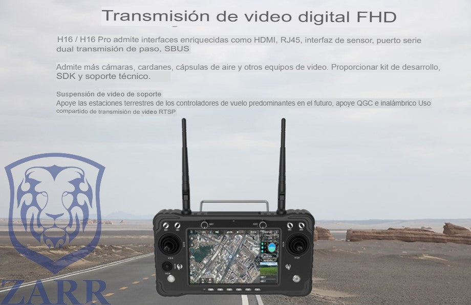 H16 es una estación de control terrestre portátil y rentable con enlace de video, enlace de datos, RC y sistema Android, todo en uno, que presenta baja latencia, buen rendimiento anti interferencias y largo alcance de transmisión.