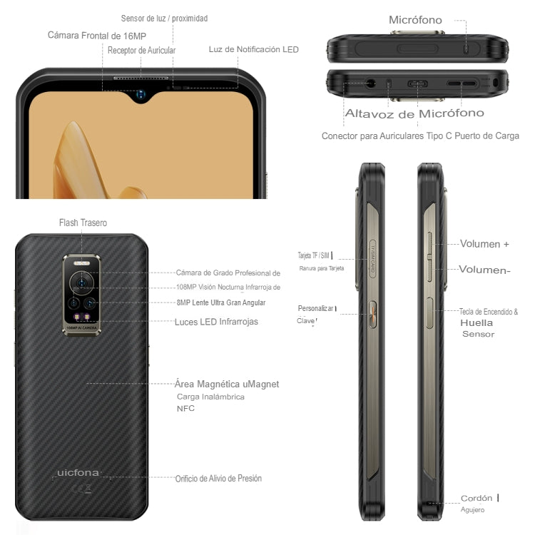 Contra agua, contra polvo, reforzado a golpes, grado militar IP69K, resistente a altas y bajas temperaturas.